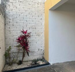 Casa com 02 quartos, sala estar na entrada, sala de jantar, 01 banheiro, cozinha, área de serviços, cômodo despejo lateral externa, garagem para 02 carros, área externa nos fundos.